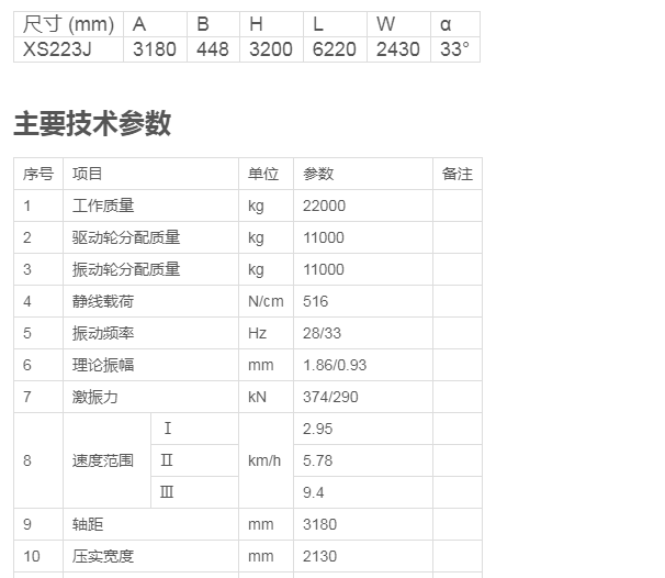 XS223J振動壓路機(jī)是一款高效節(jié)能超重型機(jī)械驅(qū)動單鋼輪振動壓路機(jī)。適宜于卵石、砂性土壤、冰磧土、爆破巖石和粘性土壤的壓實(shí)作業(yè),也適宜于各種大型工程中對混凝土、穩(wěn)定土的基礎(chǔ)材料的壓實(shí)。